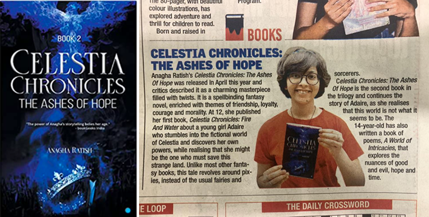In continuation to the Celestia Chronicles series, Grade 9 student Anagha Ratish recently published her third book - 'Celestia Chronicles Ashes of Hope'. This is her second book in the Celestia Chronicles trilogy. The critically acclaimed book is a charming masterpiece filled with twists. It is a spell bounding fantasy novel enriched with themes of friendship, loyalty, courage and morality. As a self-motivated teenager, Anagha wants children to learn how to change and be agile in this ever-changing world.