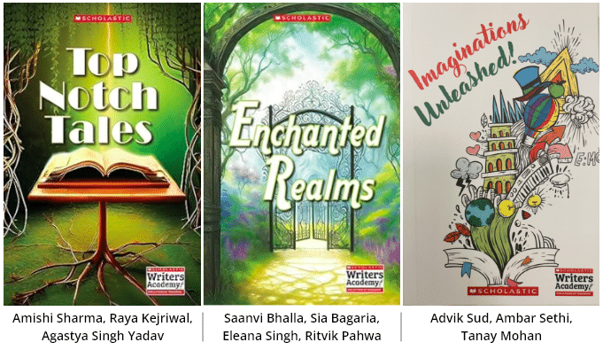Congratulations Advik Sud (Grade 7), Ambar Sethi (Grade 8), Tanay Mohan (Grade 9), Saanvi Bhalla (Grade 6), Sia Bagaria (Grade 6), Elena Singh (Grade 7), Ritvik Pahwa (Grade 7), Amishi Sharma (Grade 6), Raya Kejriwal (Grade 7) and Agastya Singh Yadav (Grade 8). These talented writers have been selected, mentored and published under the Scholastic Writers Academy Programme with their short stories being published into beautiful anthologies.