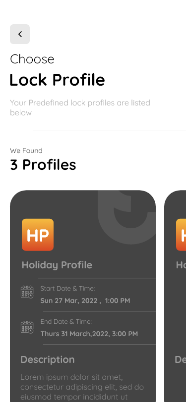 Create unlimited number of profiles with varying lock rules and criteria to fit your lifestyle (weekend, weekday, holiday...)