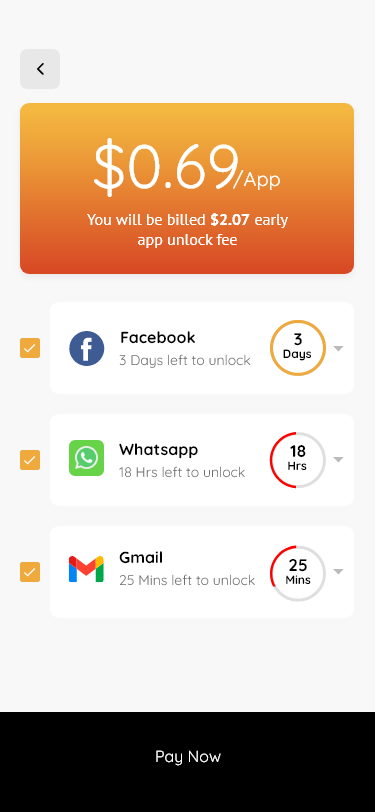 Apps can only be accessed after the lock duration has elapsed or after the payment of a break lock fee of 0.69$ per app