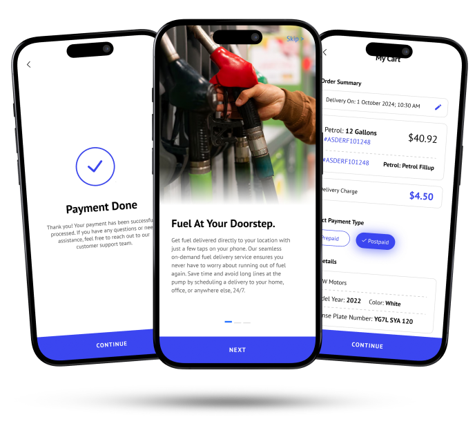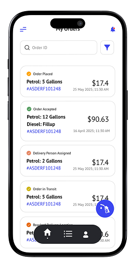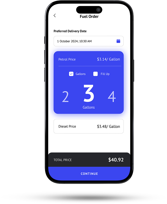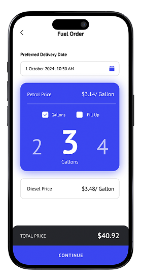 Open the app, enter your location, select your fuel type, and place your order with just a few taps.