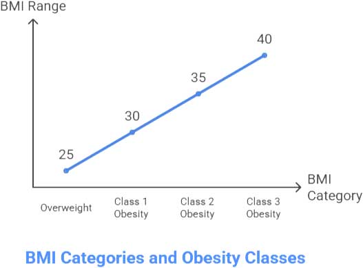 | BMI Range | 25.0 – 29.9 | 30.0 or higher | 40.0 or higher |