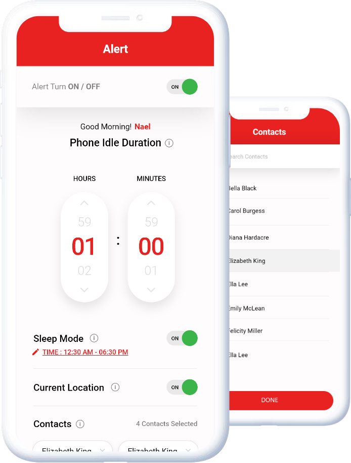 SMS’s and push notification alerts along with the last known location will be sent to emergency contacts after phones remain idle for a prolonged period of time.