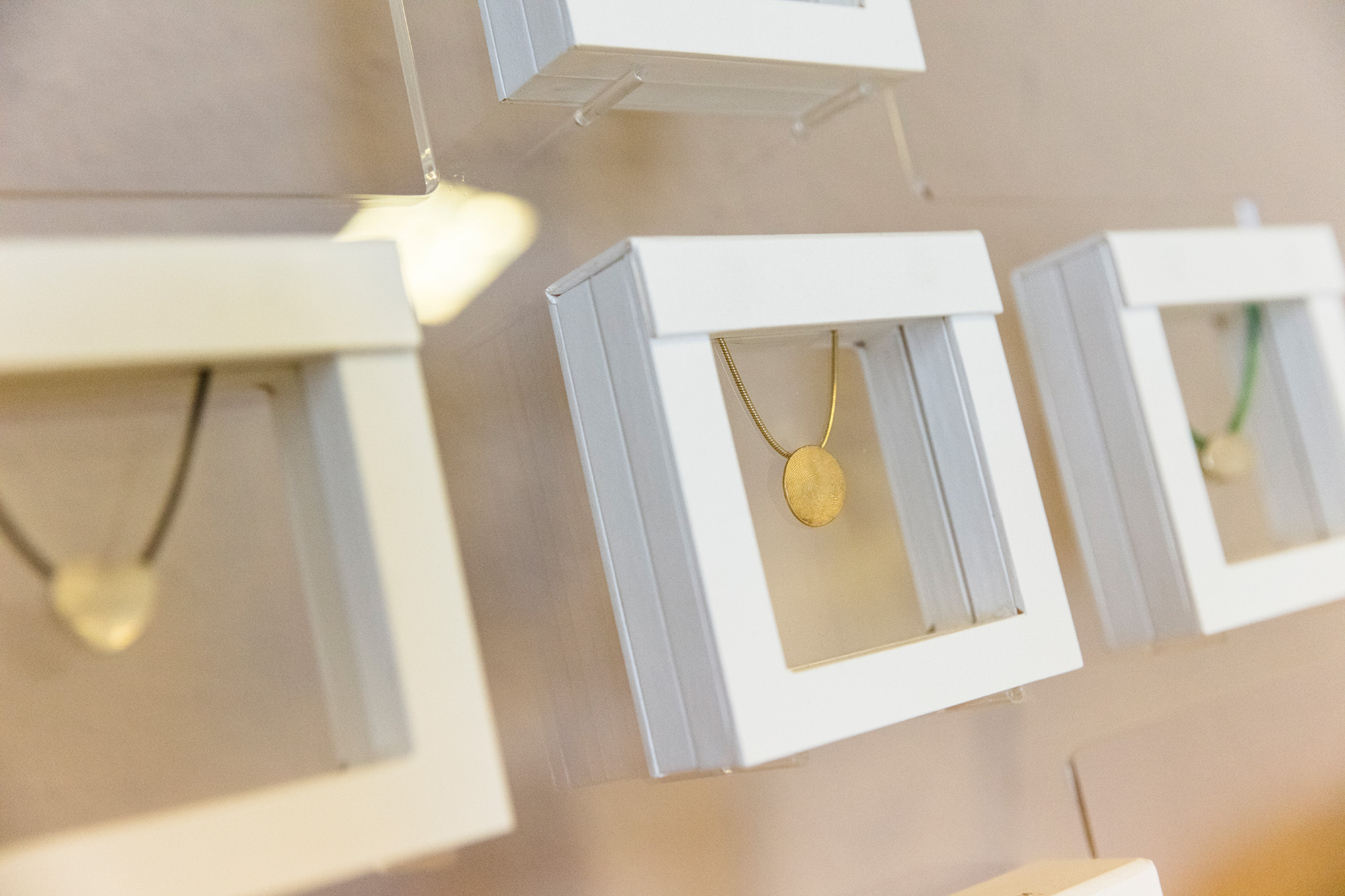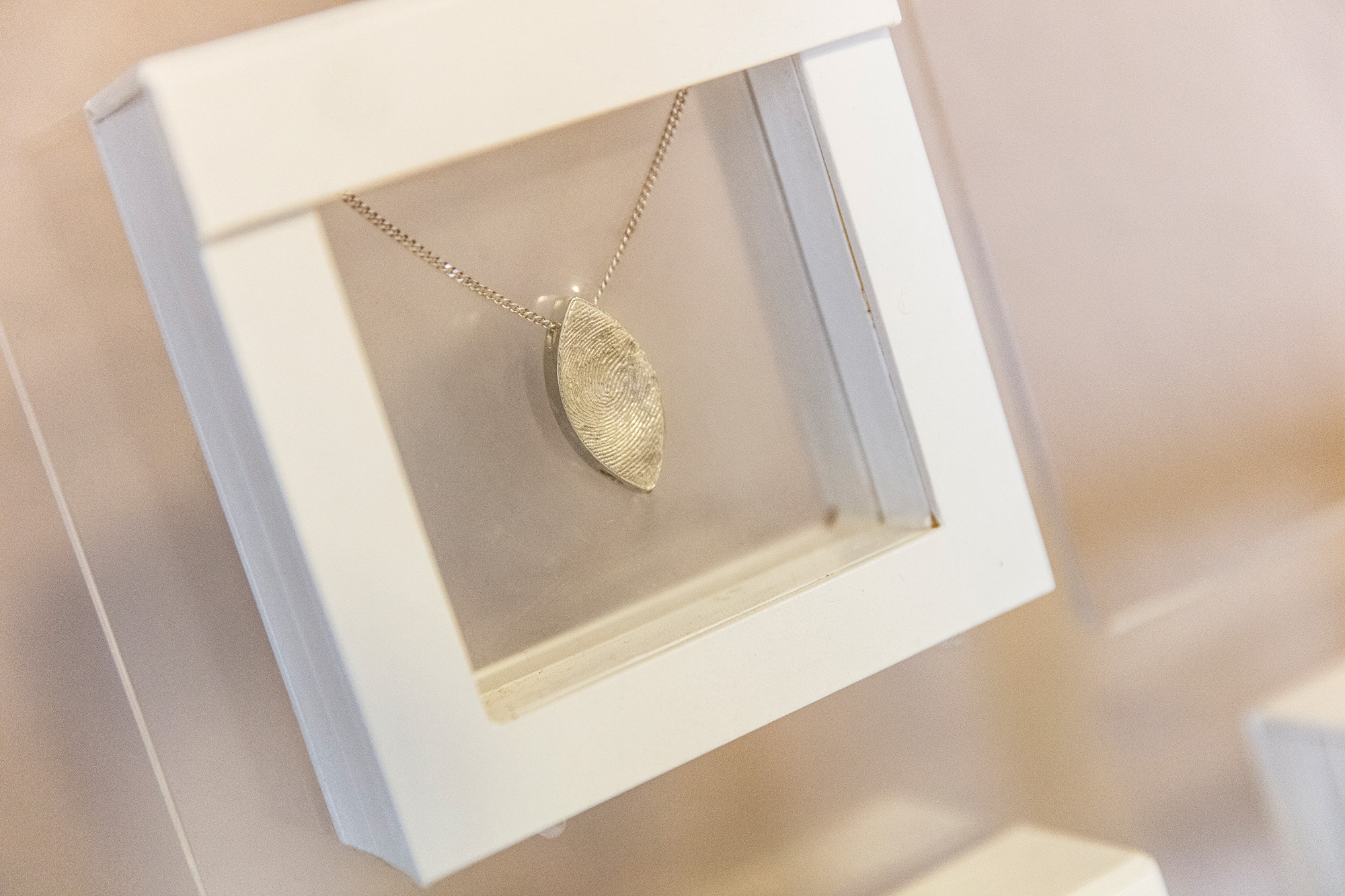 Gerne vermitteln wir Ihnen Stücke aus der Collection Fingerprint von „Körper & Form“. Den Fingerabdruck Ihres Angehörigen nehmen wir kostenfrei ab und bewahren ihn auf Wunsch bis zu zehn Jahre auf, falls Sie sich erst zu einem späteren Zeitpunkt für ein Fingerprint-Schmuckstück entscheiden möchten. Auch die Abnahme und Veredelung von Totenmasken ist möglich.